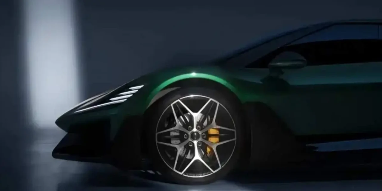 این خودروی برقی جدید کاملاً شبیه یک ماشین مسابقهای به نظر میرسد. بدنهای کشیده و کمارتفاع دارد که بسیار نزدیک به زمین قرار میگیرد. گلگیرهای جلو و عقب برجسته هستند و ظاهری عضلانی ایجاد میکنند. چرخها طراحی ششپرهای دارند که شبیه گلبرگ به نظر میرسد. این چرخها از الگوی ششپیچ استفاده میکنند؛ الگویی که معمولاً در خودروهای بسیار سریع دیده میشود و برای نصب ترمزهای کربنسرامیکی قدرتمند ضروری است. این خودرو همچنین ستون A پنهان دارد؛ بخشی که شیشه جلو را نگه میدارد و باعث میشود خودرو کشیدهتر و روانتر دیده شود.